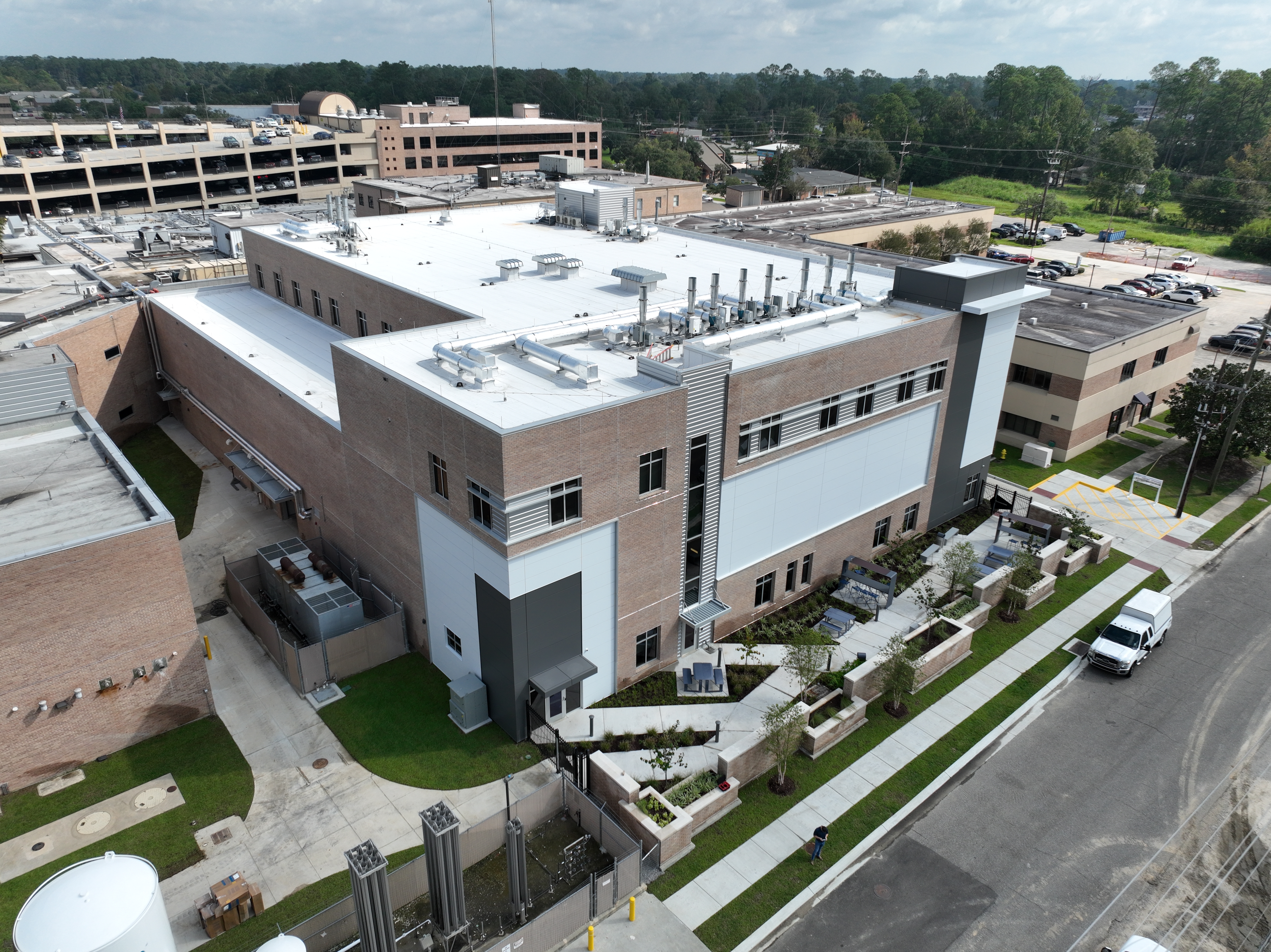 The recently completed addition for Slidell Memorial Hospital tied the new facility into the existing hospital. Demolition involved creating an opening on the existing facility where the new structure would tie-in. To protect the existing space from the open-air environment, a unique closed cell spray foam insulated barrier was applied to the opening, waterproofing the space until the new addition's structure was constructed and dried in.