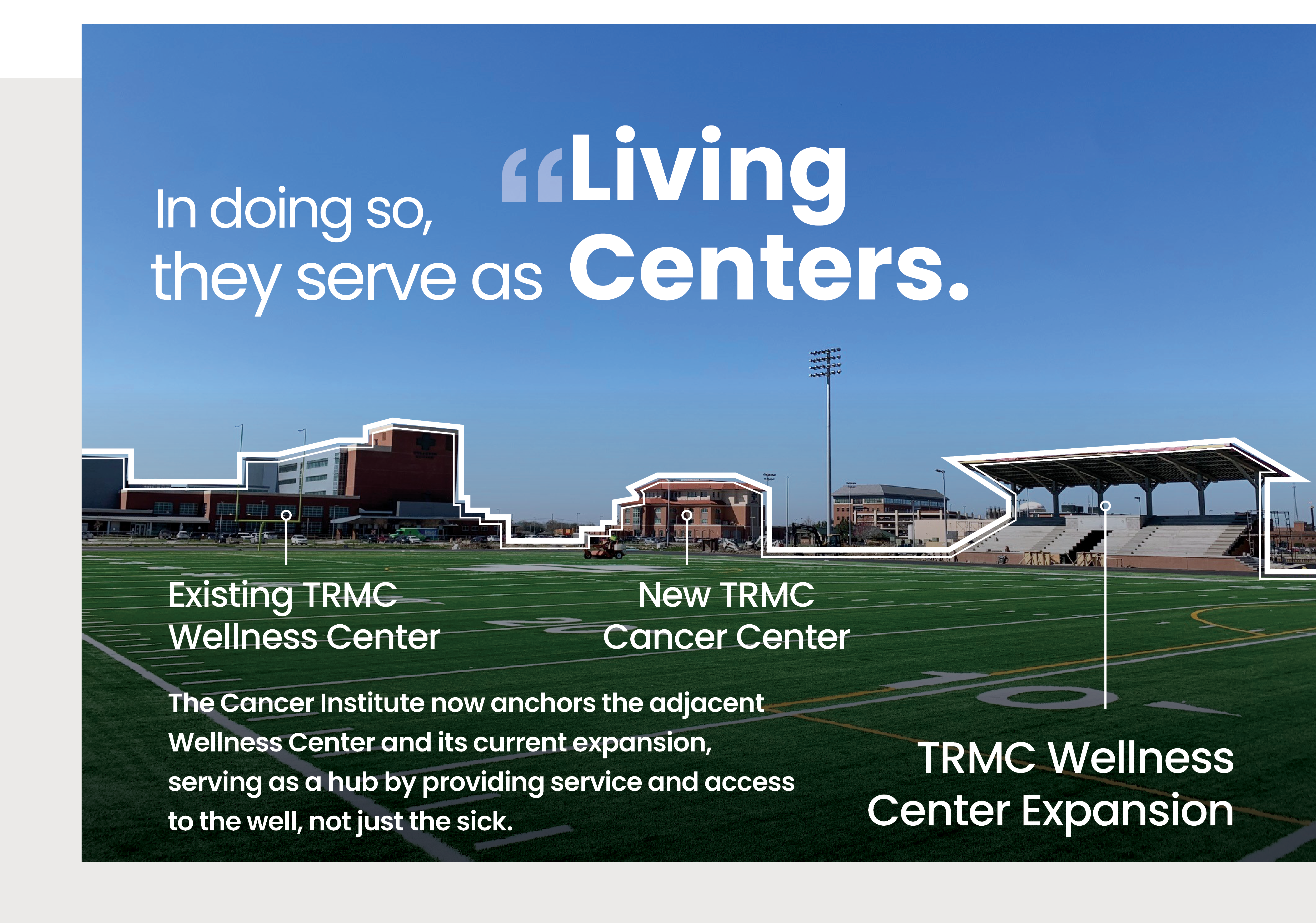 Regardless of these challenges, this new facility now serves the greater Thibodaux region as a Living Center in its own right. The Cancer Institute now anchors the adjacent Wellness Center and its current expansion and serves as a hub by providing service and access to the well, not just the sick, offering a supportive network of care and spaces to gather. We are expected to complete the Wellness Center expansion this spring.