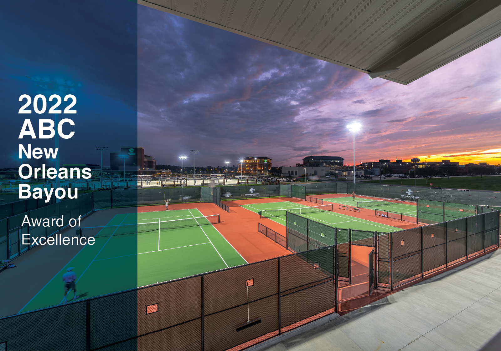 The expansion of Thibodaux Regional's Wellness Center brought this new 24-acre Sports Complex to the forefront of health and wellness in southwest Louisiana. Initially featured in our Q1 Newsletter, "The Future of Healthcare Design and Construction," the TRHS Sports Complex fills a gap in healthcare, promoting wellness and preventative care throughout the region. The site boasts 12 tennis courts, 12 sand volleyball courts, football/soccer field, an 8-lane track (all built to NCAA standards), as well as two pavilions, restrooms, concession area, and ponds.