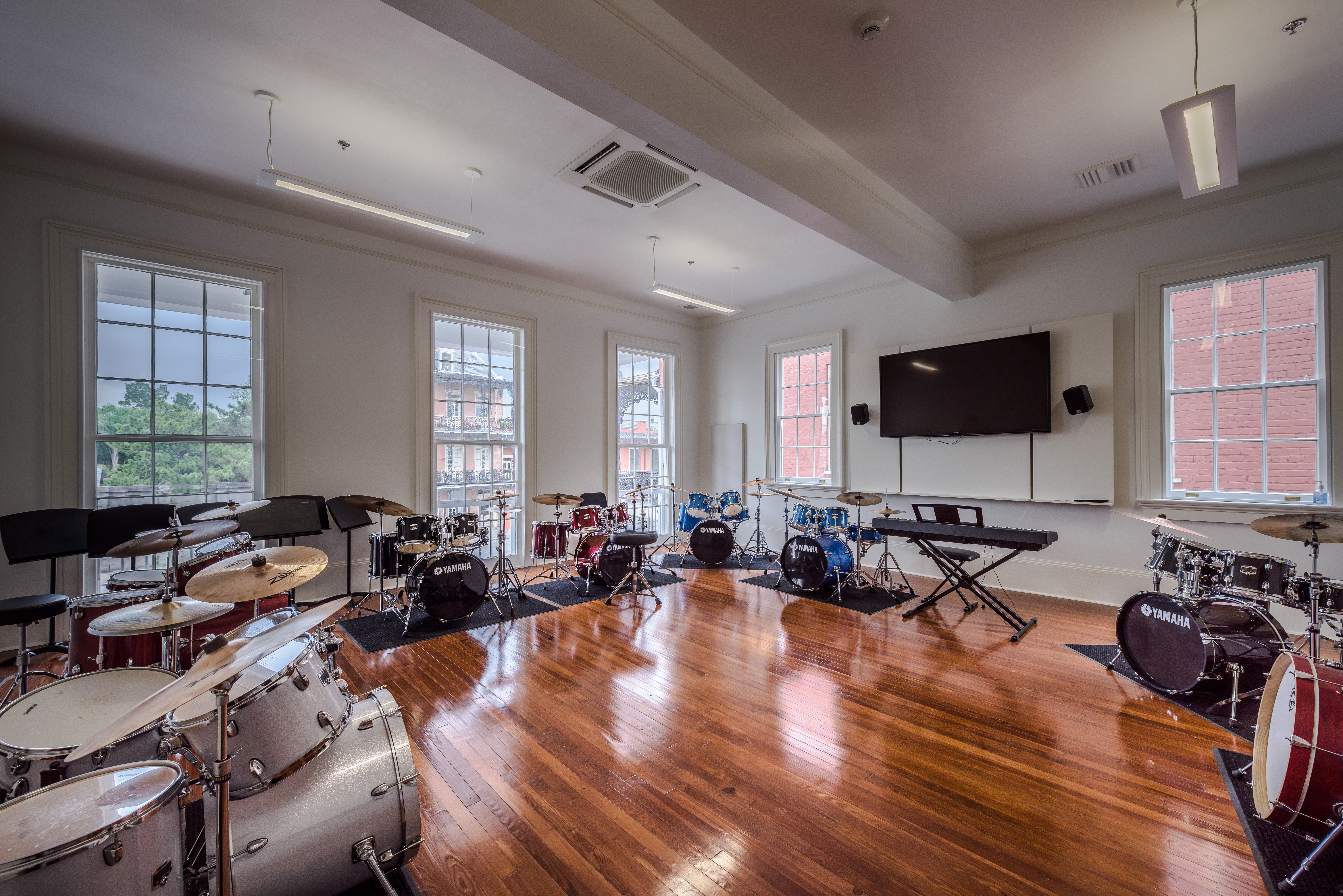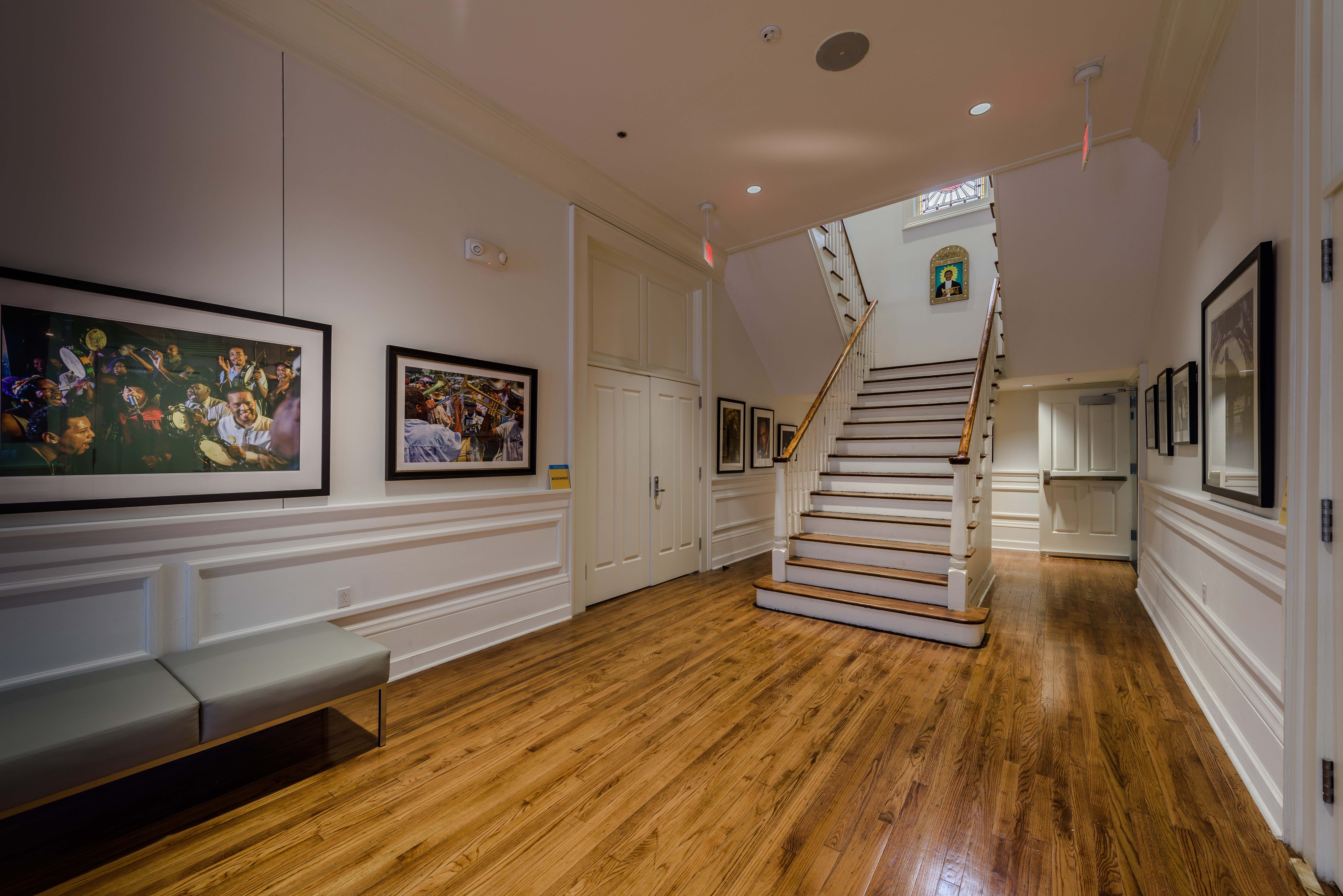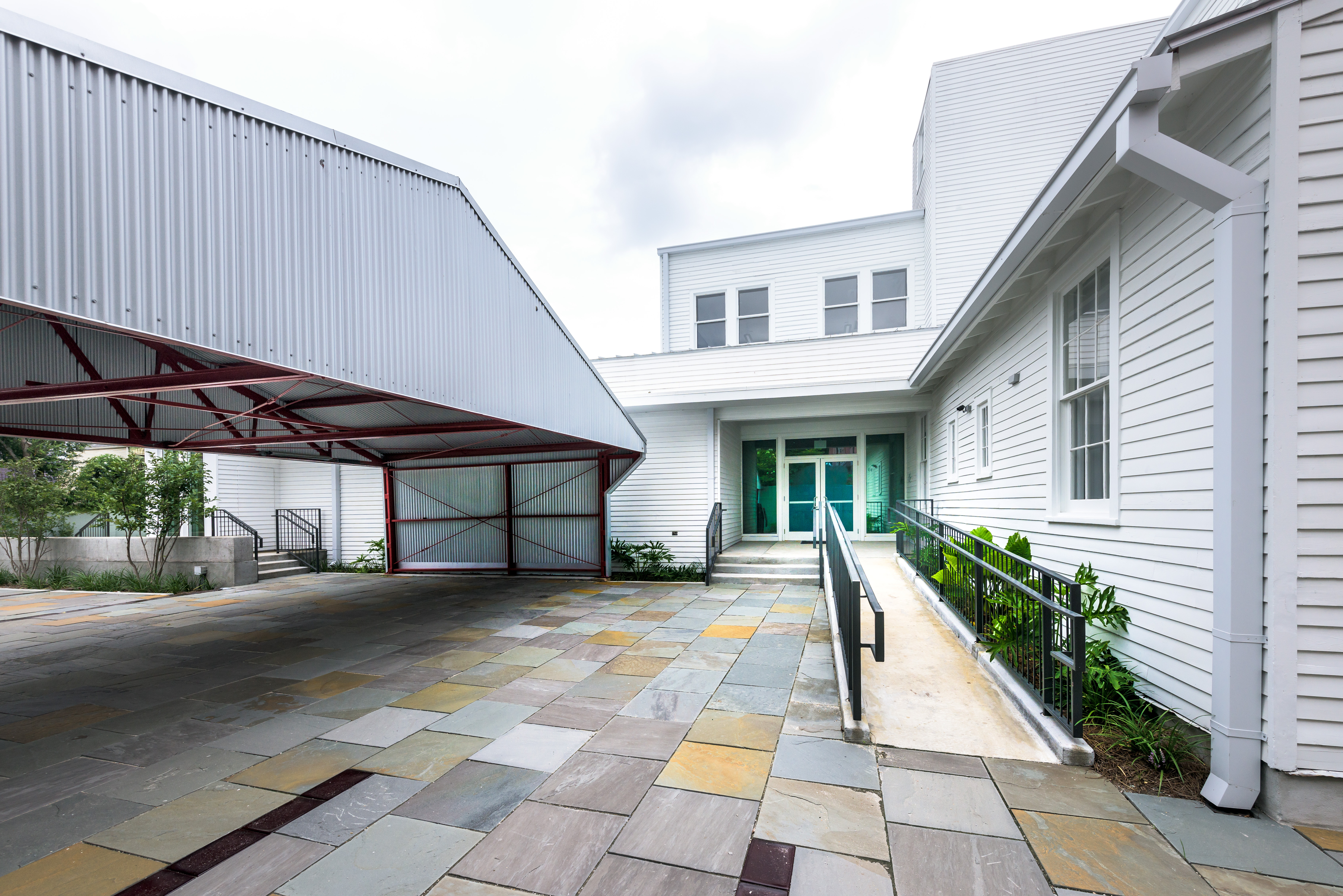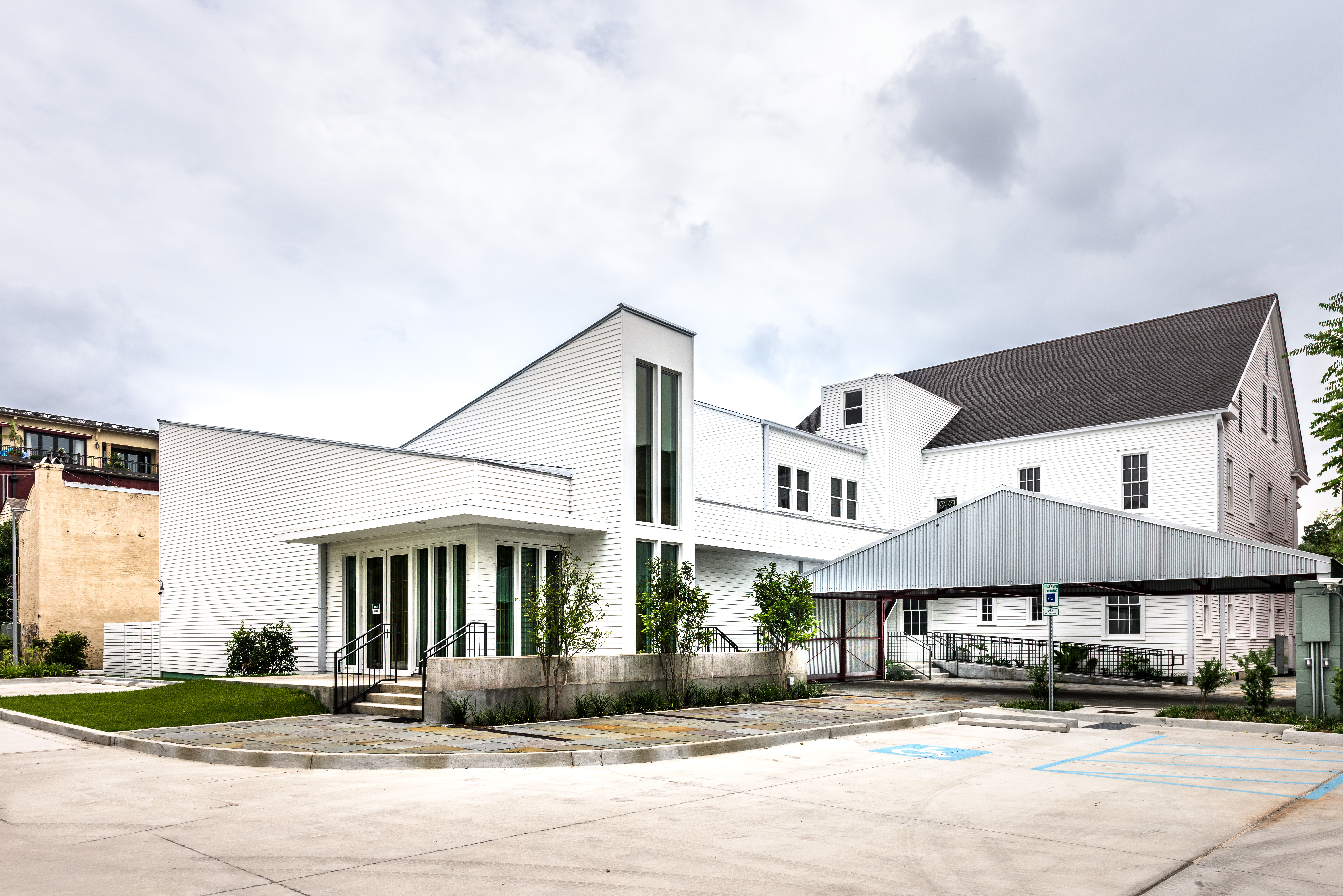 The George & Joyce Wein Jazz & Heritage Center project consisted of the full historical restoration and adaptive reuse of what was originally two separate townhouses. The original structures were built in the 1870s by Cuban developer Jules LeBlanc. They were joined into one building in the early 20th century and the façade was dramatically remodeled to reflect the tastes of that era. The Southern Colonial Revival building, with its monumental white columns and French Ionic composite capitals, became the home of the Tharp-Sontheimer-Laudumiey funeral home. In 2008 the Jazz & Heritage Foundation purchased the property.