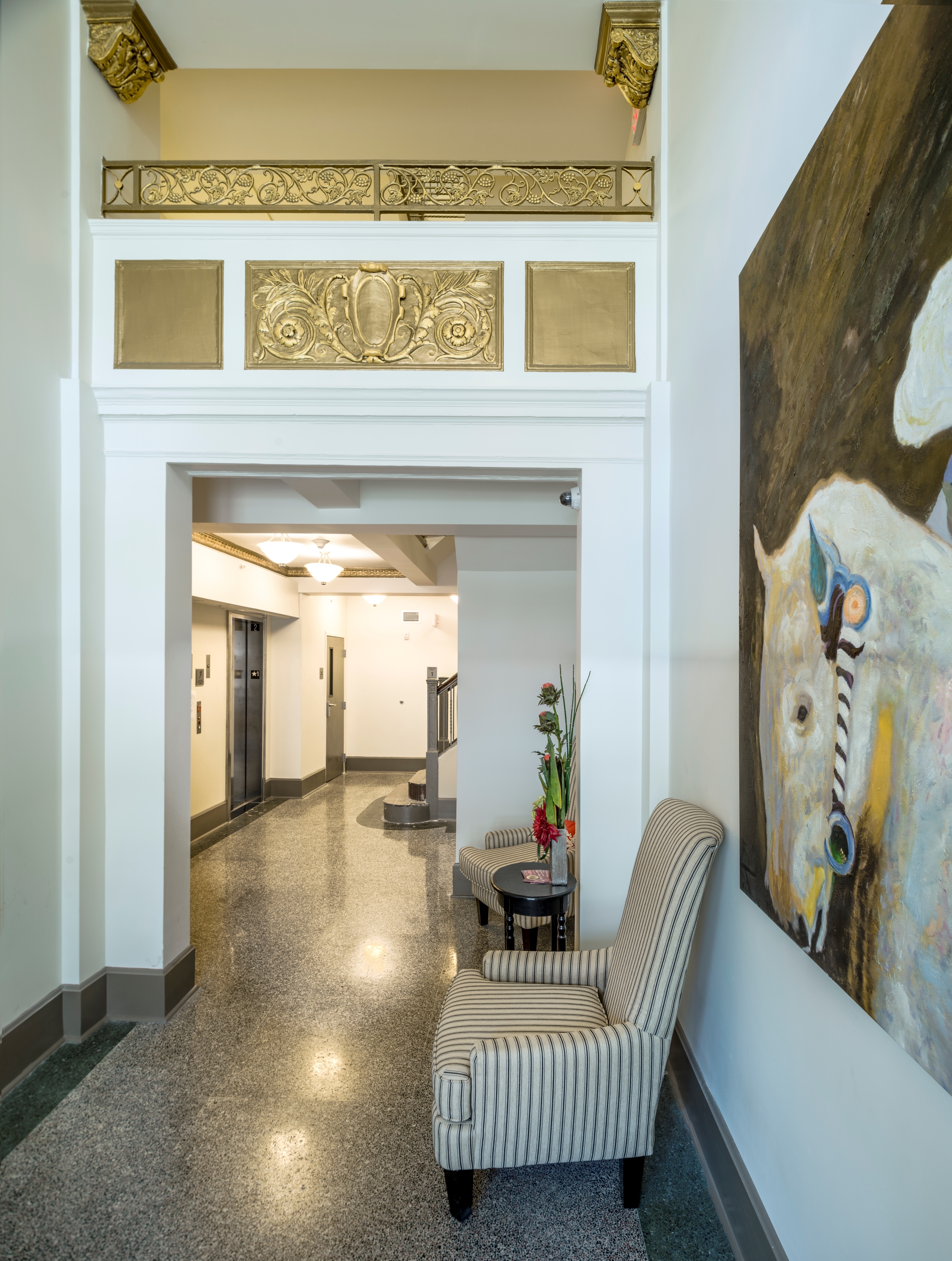 DFC performed selective demolition, historic restoration of the existing lobby finishes and terrazzo, and new construction of the apartment spaces using metal studs, drywall and paint. One hundred one new wood windows that matched the existing historic windows were installed. Two new hydraulic elevators were added to the building.