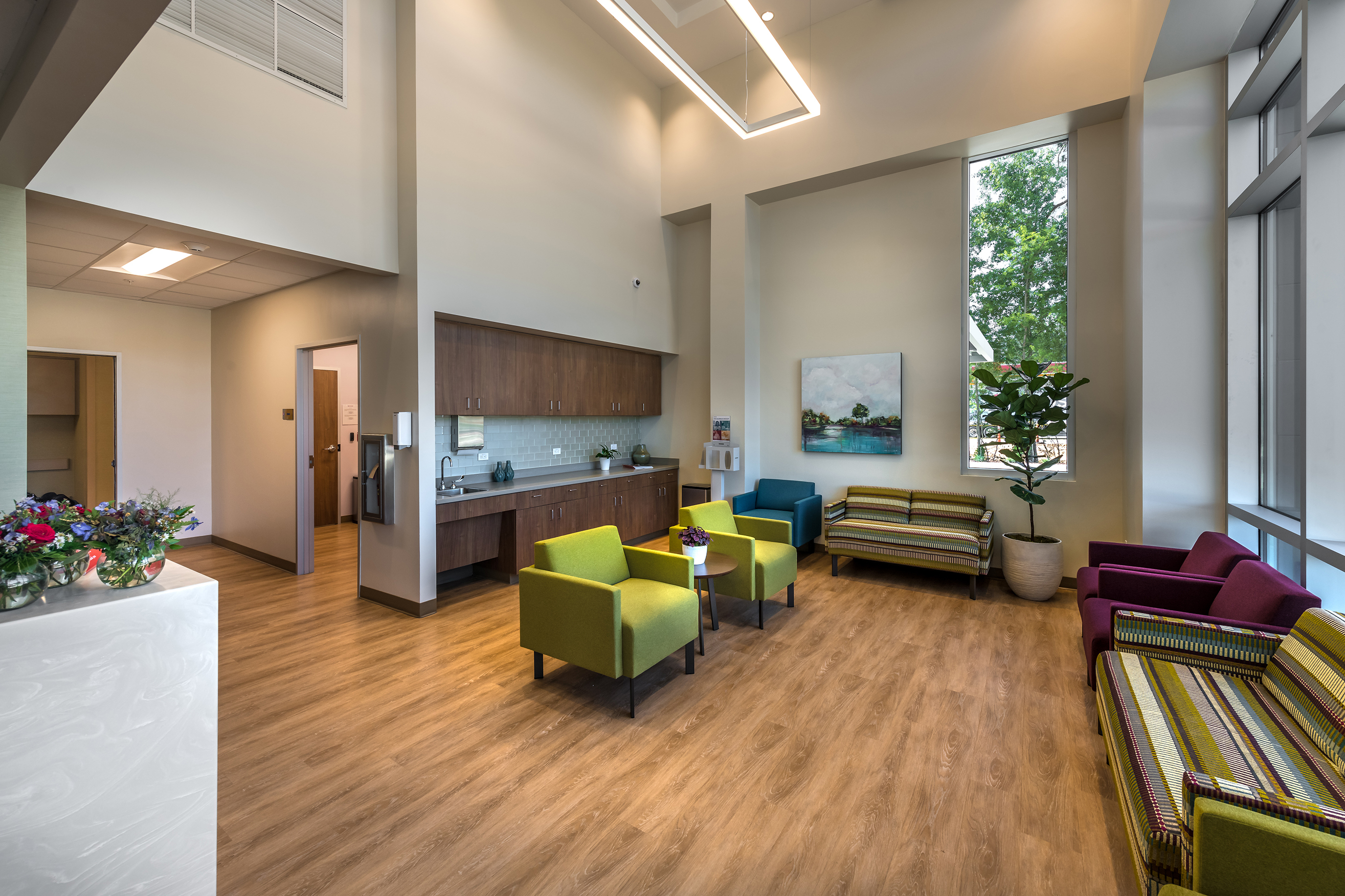 Following a fast-tracked schedule, this new ground-up emergency department and hospital facility brings more than 10 patient rooms, an MRI, CT scan, and X-ray rooms to the Northshore area. Patient rooms were designed with code-accessible doors that allow patients to access their assigned examination room from the parking lot without the need to check-in at the front lobby. This design decision was the result of planning during the height of the COVID-19 pandemic.