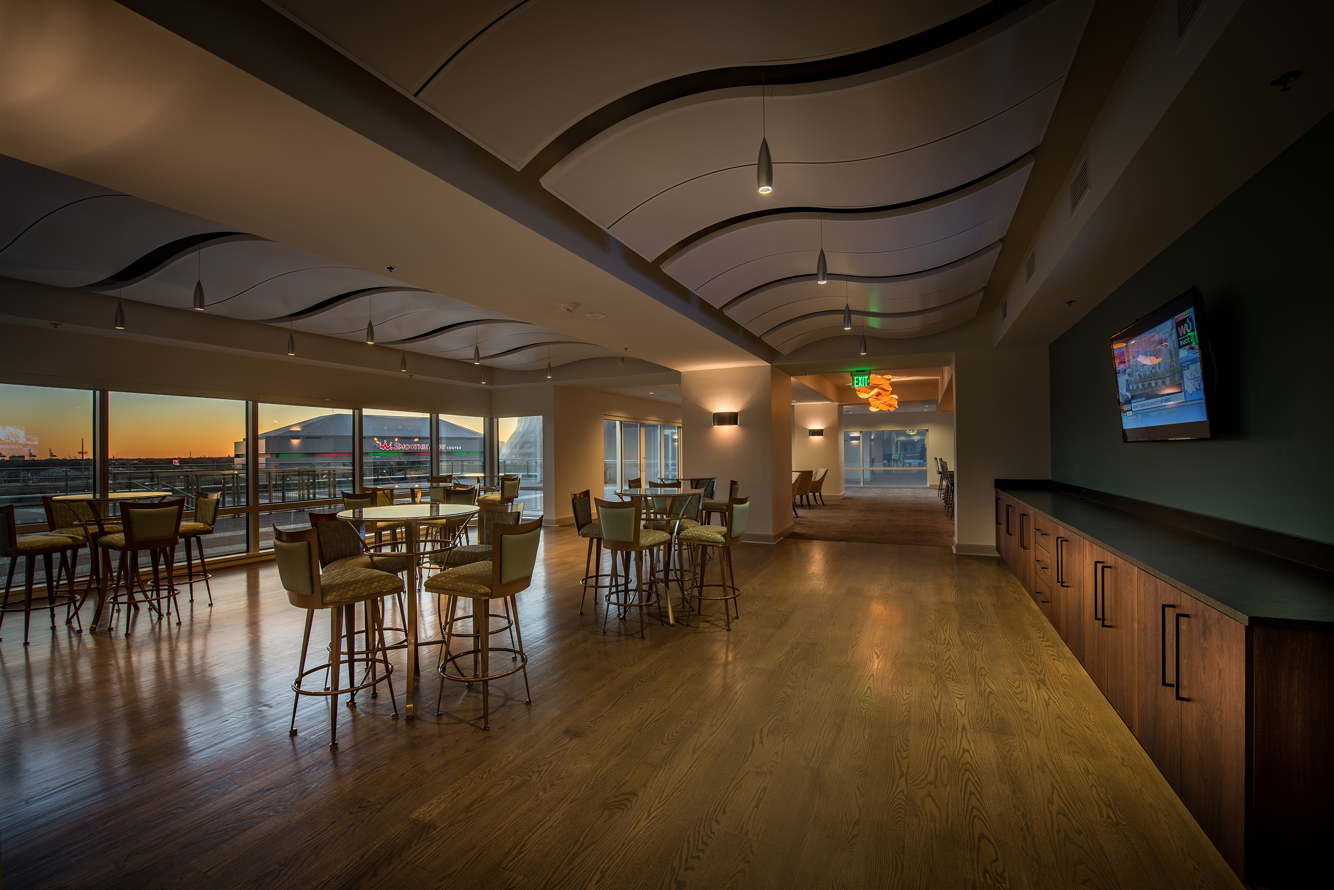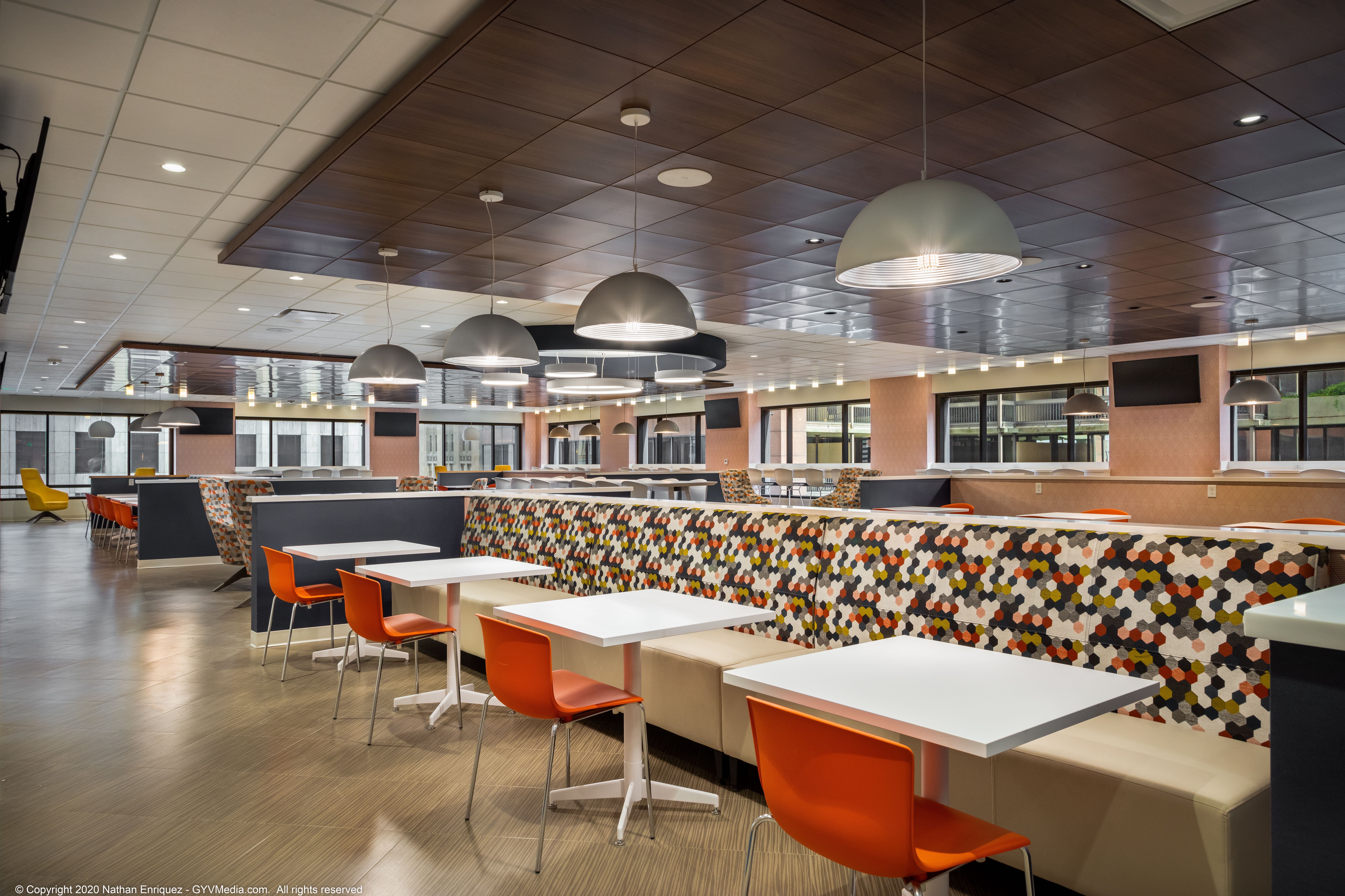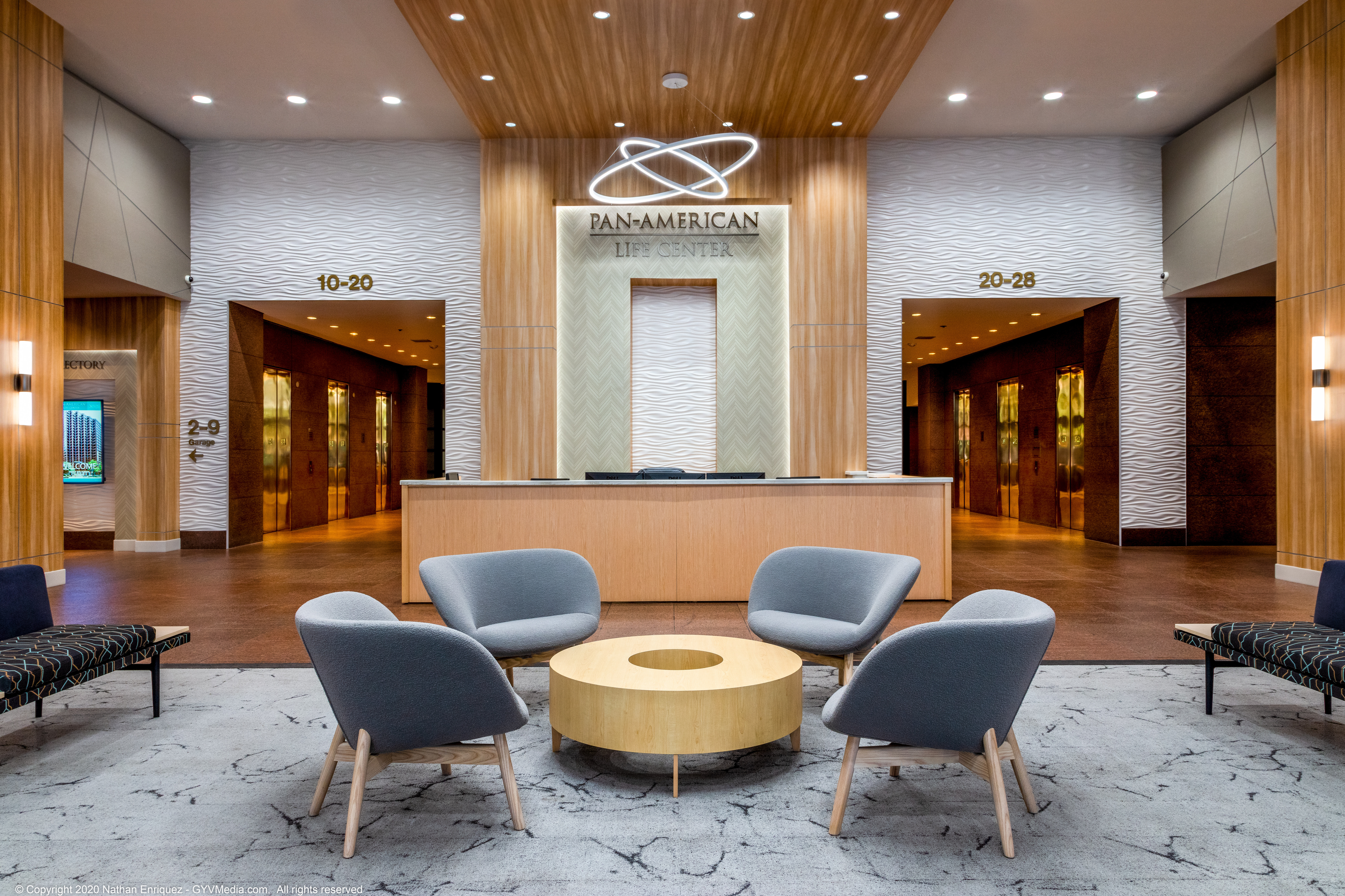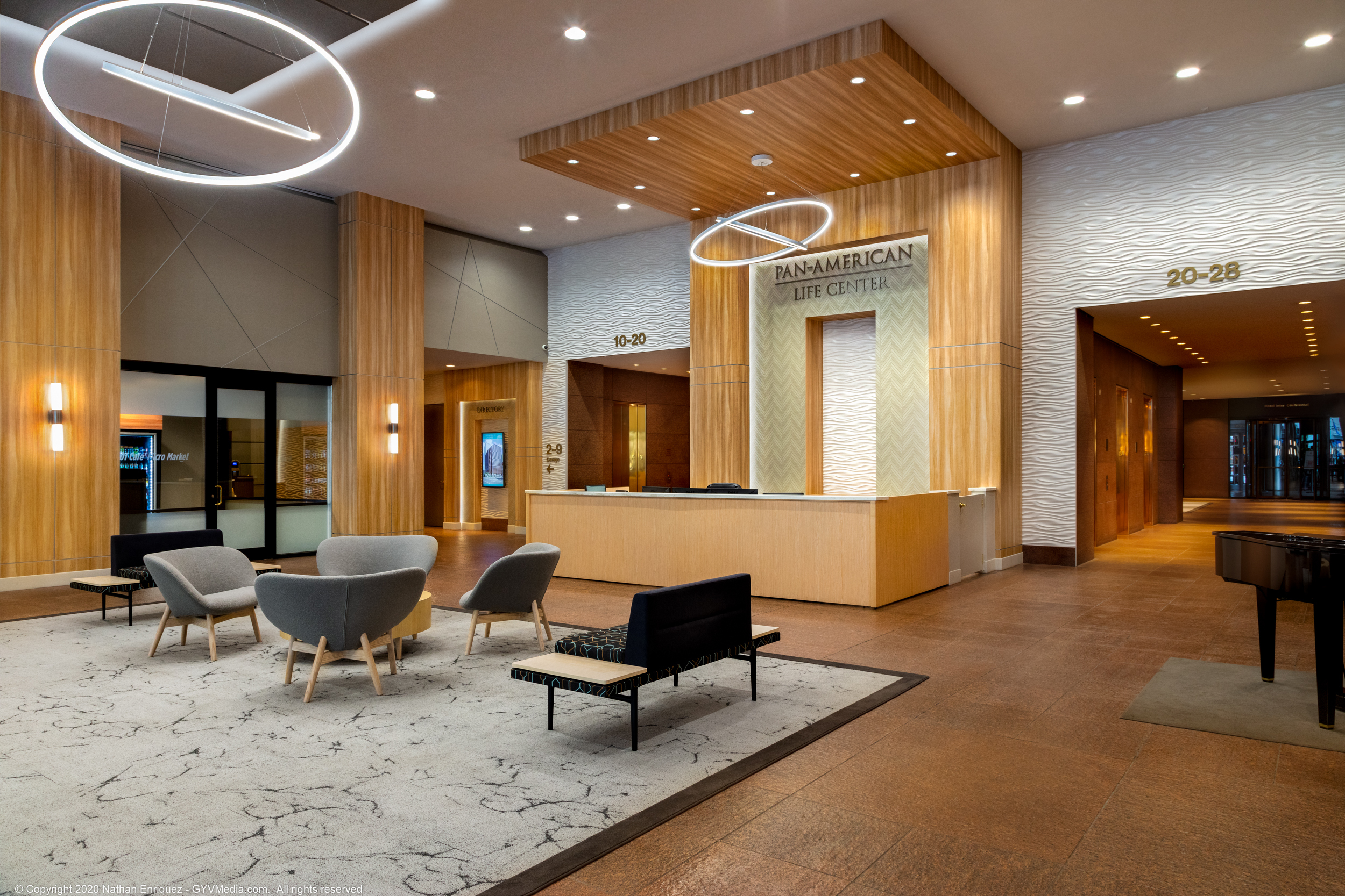 The Pan American Life Center, located on Poydras Street in downtown New Orleans, is one of the premier office buildings in New Orleans. DonahueFavret was tasked with the renovation of both the lobby and the 11th Floor. The lobby received fresh finishes and new fixtures to lighten up the main entrance corridor to this iconic building. The renovation of which was performed in an active space as business men and women still needed to access their office spaces on floors above. The 11th floor renovation included demolishing the existing 11th Floor down to the existing structure and starting with a clean slate. From a new kitchen and dining area to conference rooms, meeting rooms and an auditorium, the roughly 25,000 square foot space offers many amenities to the business culture in the city of New Orleans.