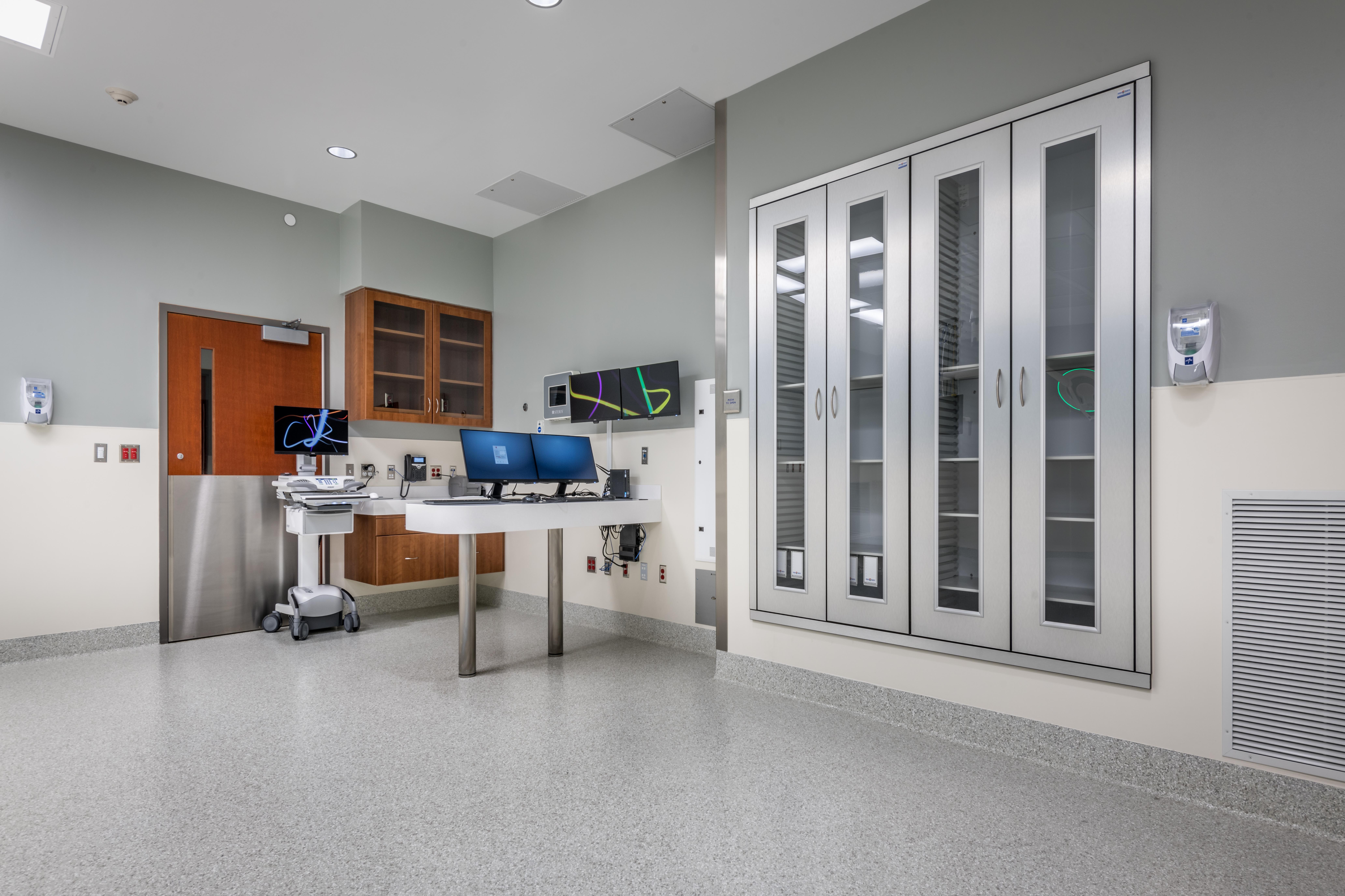 At 10,000 square feet, this project introduced four additional hybrid operating rooms, a new sterile corridor, and large supply rooms. The project also included a 6,500-square-foot mechanical penthouse on the roof above the structure, as well as new chillers and air handling units to super-cool the existing operating rooms of the hospital.