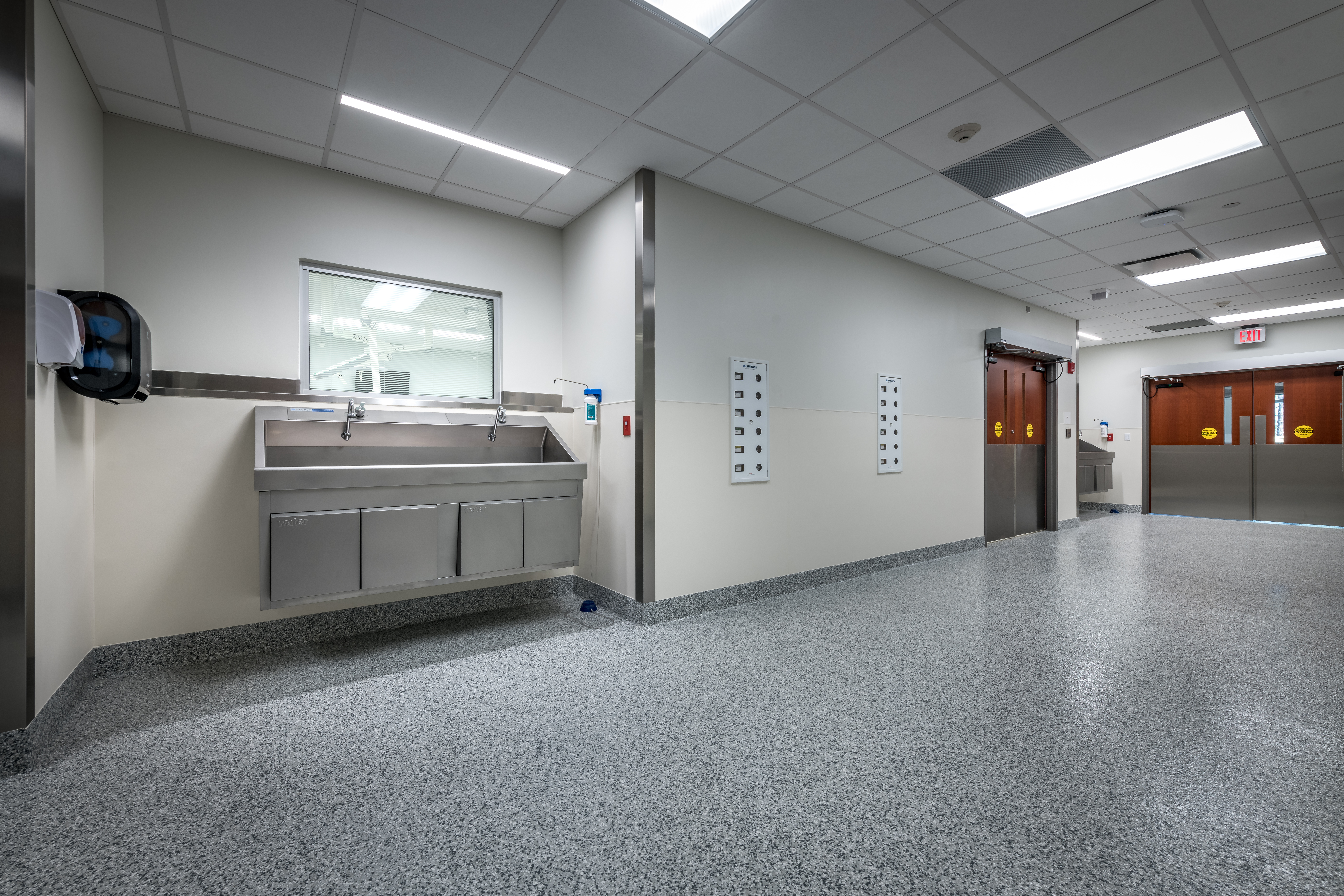 The existing hospital and associated operating rooms remained operational throughout the construction process, unhindered by both the demolition of the existing corridor, rerouting of utilities, and eventual mock shutdowns of systems during the testing phase.